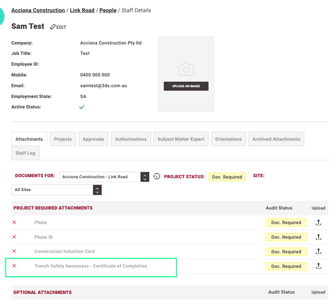 The Trench Safety Awareness - Certificate of Completion must be uploaded to 3D Safety and will display under the Project Required Attachments. This is now a mandatory requirement for all contractors.